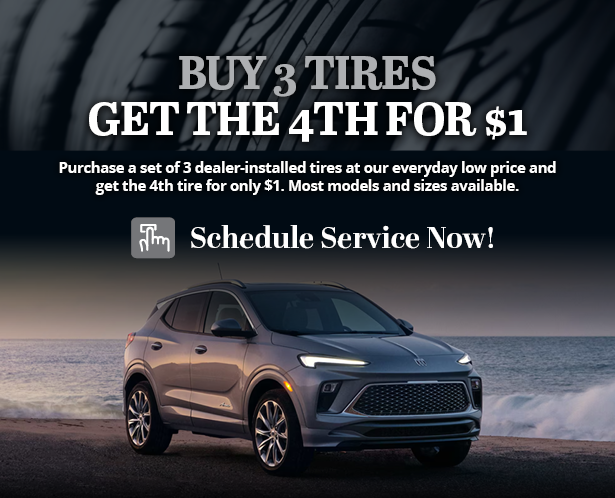 Qualifying brands include GoodYear, Dunlop, Bridgestone, Firestone, Continental, General, Hankook, Pirelli, Uniroyal & Kelly. NON-qualifying brands are Michelin & BF Goodrich. See participating GM Dealerships for details and list of tire brands. Purchase and installation must be at a participating U.S. GM Dealer. Highest or equal value tire will be $1. Maximum consumer purchase price of $450 per tire. Additional taxes and fees may apply. Offer subject to availability and may change at any time. Limit one offer per VIN. No other offers apply, except GM Tire Price Match Guarantee (Restrictions apply. Eligible price must be provided at the time of purchase. Visit Buick.com/tires for details). Offer ends 4/30/26.