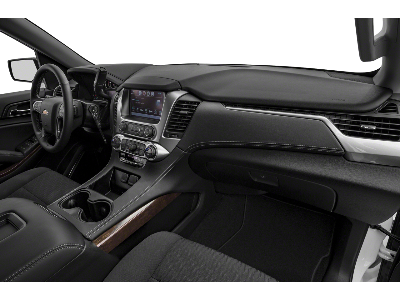 Sun. Entertainment and Destinations Package: Chevrolet Infotainment AM/FM Stereo with Navigation; Rear Seat Blu-Ray/DVD Entertainment System; Power Sunroof. Luxury Package: 2nd Row Power Release 60/40 Split Folding Bench Seat; Heated 2nd Row Seats; Hands Free Power Liftgate; Heated Leather Wrapped Steering Wheel; Memory Settings; 3rd Row 60/40 Power Fold Split-Bench; Front and Rear Park Assist; Power-Folding Heated Outside Mirrors; Lane Change Alert with Side Blind Zone Alert; Power Tilt and Telescopic Steering Column with Memory; Passive Entry System; Fog Lamps; Rear Cross Traffic Alert; Push Button Keyless Start. RST Edition: Black Roof Rails; Unique RST Emblem; P285/45R22 AS BW Tires; Set of 4 Wheel Locks; Front and Rear Black Bowties; 22" X 9" Gloss Black Aluminum Wheels; Standard Suspension Package; Black Beltline Moldings; Unique Gloss Black Sport Grille; Body-Color Door Handles and Headlamp Accents; Black Mirror Caps. Preferred Equipment Group 1LT: Memory Settings; Leather-Appointed Seat Trim; Remote Vehicle Start; Power Liftgate; Rear Park Assist with Audibl