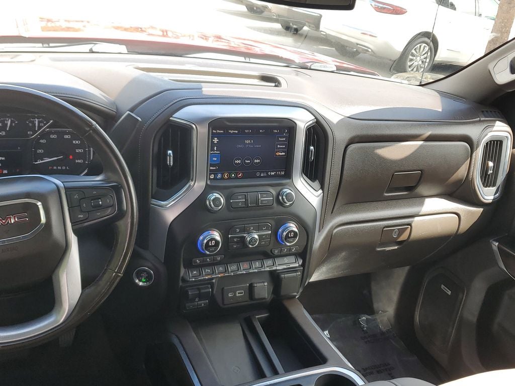 This 1/2 ton pickup has auto-adjust speed for safe following. Protect the vehicle from unwanted accidents with a cutting edge backup camera system. Start this unit from inside with remote start. An off-road package is equipped on this unit. This vehicle's Lane Departure Warning helps keep you in your lane. This model's Cross-Traffic Alert: Safeguarding you from unexpected traffic when reversing. The leather seats in this 1/2 ton pickup are a must for buyers looking for comfort, durability, and style. Lane Keep Assist in this model helps maintain safe driving by gently steering to stay within the lane. The GMC Sierra features a hands-free Bluetooth® phone system. Good News! This certified CARFAX 1-owner vehicle has only had one owner before you. This unit offers Automatic Climate Control for personalized comfort. Keep your hands warm all winter with a heated steering wheel in this 1/2 ton pickup . This 1/2 ton pickup offers Apple CarPlay for seamless connectivity.