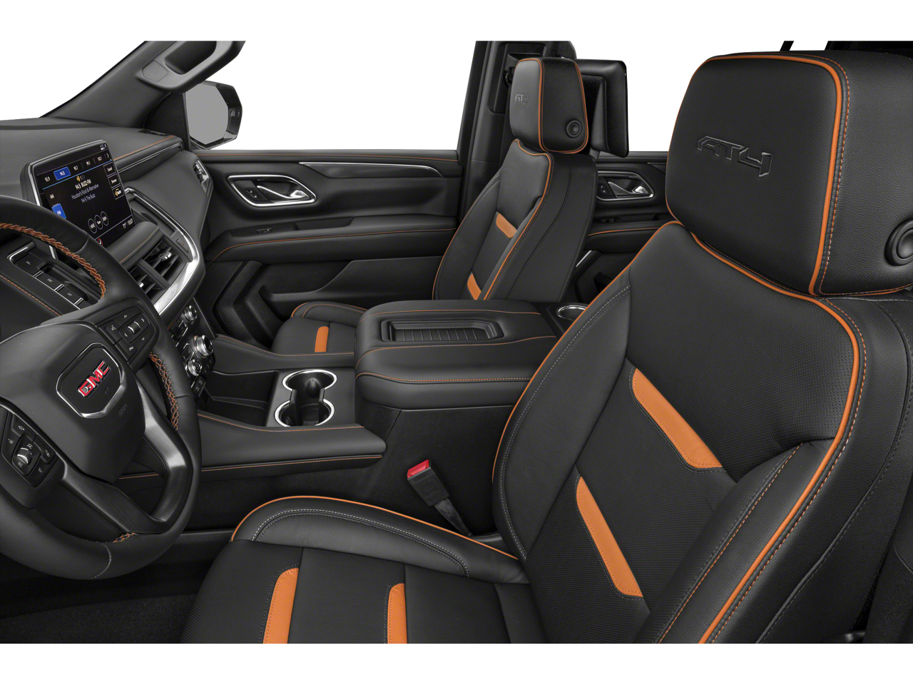 AT4 Premium Package: Dual-Pane Panoramic Power Sunroof; Power-Retractable Assist Steps. Technology Package: HD Surround Vision; 15" Diagonal Multi-Color Head-Up Display; Rear Pedestrian Alert. Preferred Equipment Group 4SB: Bright Front and Rear Door Sill Plates; Power Release 2nd Row 60/40 Split-Folding Bench Seat; 2 Presets For Outside Rearview Mirrors; 12-Way Power Seat Adjusters; 3rd Row 60/40 Power-Folding Split-Bench Seat; Safety Alert Seat; Hill Descent Control; Heavy-Duty Air Filter; Heated Automatic Steering Wheel; Heated Driver and Front Passenger Seats; Universal Home Remote; Heated 2nd Row Outboard Position Seats; Front Skid Plate; Front High-Approach Angle Fascia; Hands-Free Power Programmable Rear Liftgate; Bose 9-Speaker Stereo Audio System Feature; 2-Speed Electronic Autotrac Active Transfer Case; GMC Pro Safety Plus; Red Horizontal-Mounted Recovery Hooks; Heated and Ventilated Driver and Front Passenger Seats; Power Tilt and Telescopic Steering Column; Black Roof-Mounted Luggage Rack Side Rails; 275/60R